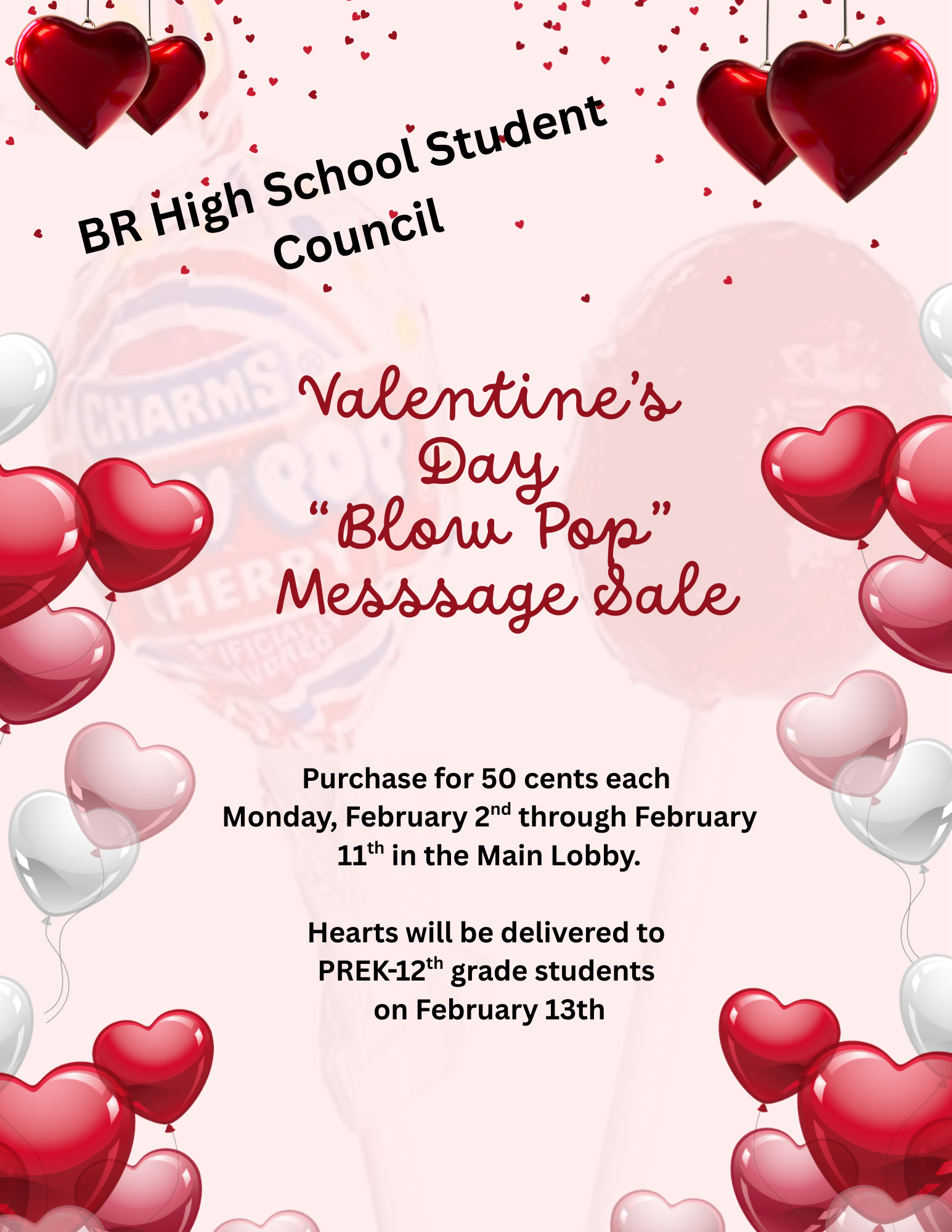 HS Student Council Valentine "Blow Pop" Message Sale
